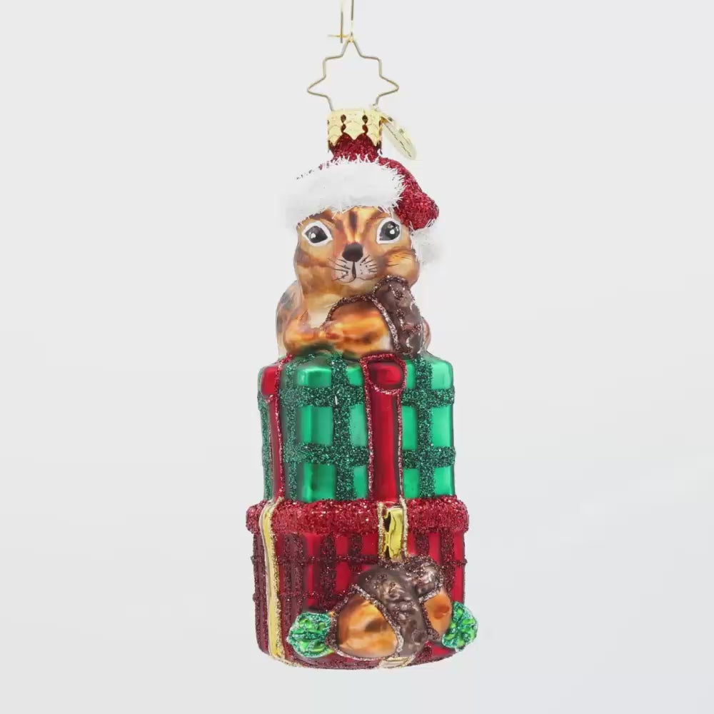 This chipmunk is causing Christmas chaos! He's got his paws all over the presents.