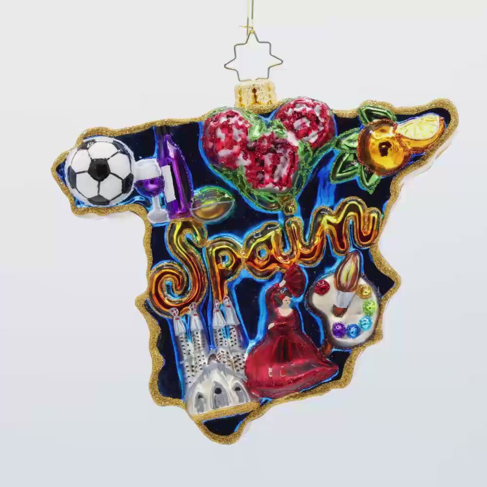 Explore the wonders of Spain with this charming ornament featuring iconic landmarks. This Spanish ornament is packed with fiesta vibes! Imagine the vibrant colors, the lively music, and the delicious food of a traditional Spanish celebration. This ornament captures the essence of Spain, perfect for adding a touch of fun and excitement to your holiday decor.