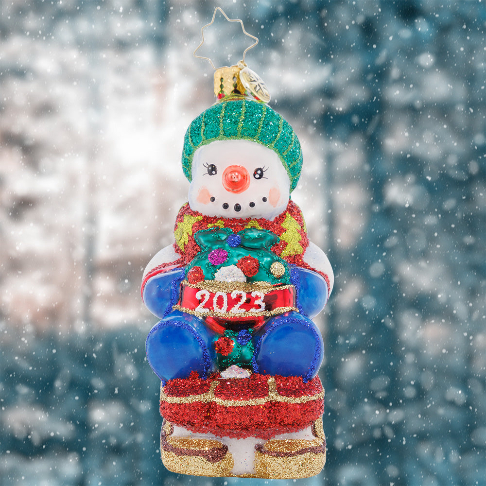 This little snowman is riding his toboggan sled into the Christmas season, looking forward to more winter fun before the holidays are all done!